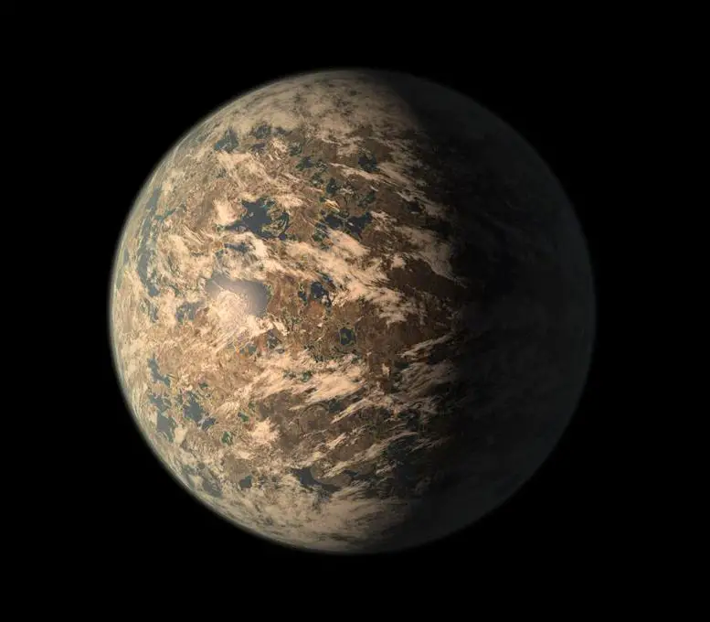 TRAPPIST-1e is a rocky exoplanet in the habitable zone of a star 39 light-years from Earth and may have water and clouds, as depicted in this artist’s impression. Credit: NASA/JPL-Caltech